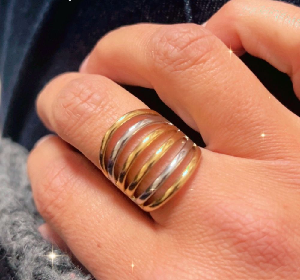 Bague en inoxydable doré et argent, réglable.