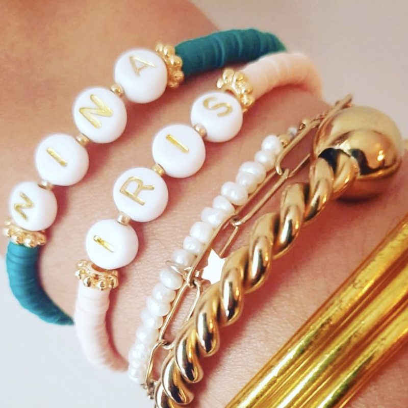 | Choix des Perles | Carrées & blanches – lettres noires, Carrées & dorées – lettres noires, Carrées & noires – lettres blanches, Rondes & blanches – lettres multicolores, Rondes & blanches – lettres noires, Rondes & nacrées – lettres dorées, Rondes & noires – lettres blanches |